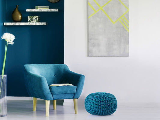 Puff/stickad puff premium Ø45cm 100% vattentät turkos