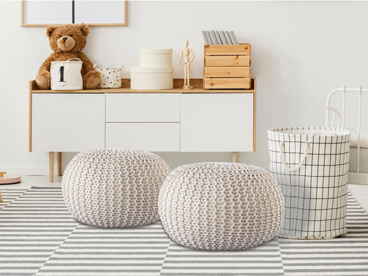 Puff/stickad puff grovstickad Ø55x37cm vit