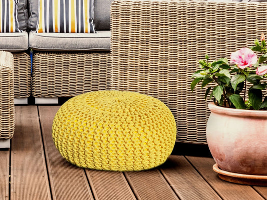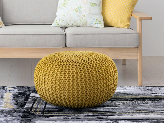 Puff/stickad puff grovstickad Ø55x37cm gul
