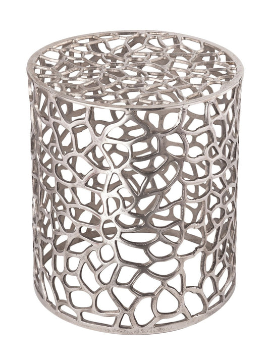 Sidebord/dekobord rund, koral design metal, sølv