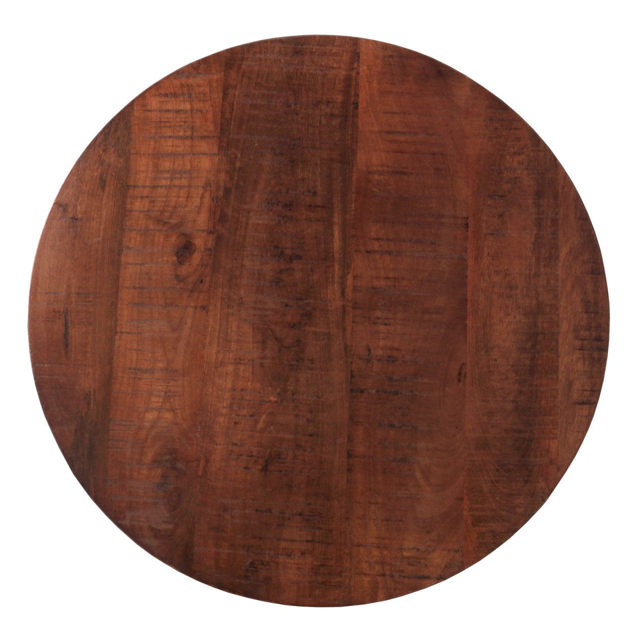 Et oplagt valg, hvis du ønsker et bæredygtigt rundt sofabord i massivt træ med et varmt farveudtryk og et råt, industrielt design.