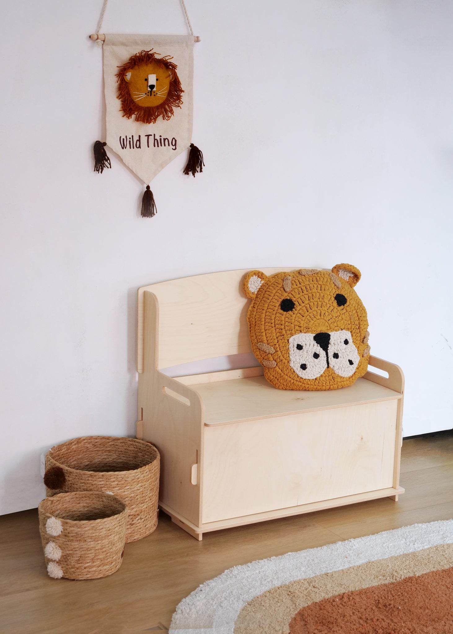 En fin bænk til stuen, udstyret med et klaplåg, så du kan opbevare dine ting pænt. Siddehøjden er 30 cm. Hurtig og enkel montering uden skruer, lavet af FSC-certificeret træ med lakeret finish. Naturfarve.