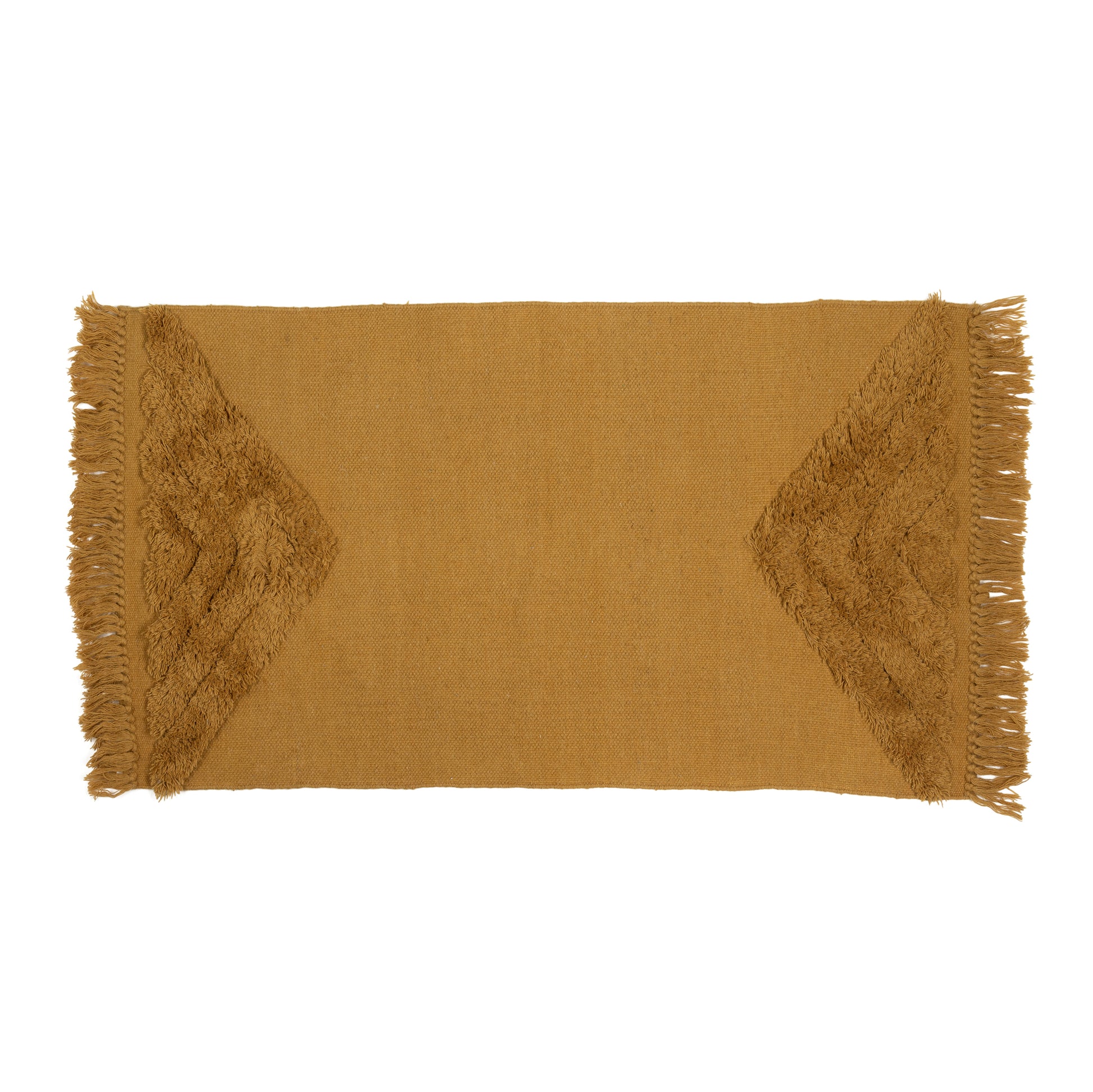 Karamelfarvet tæppe med reliefdetaljer. Tæppet er lavet af 100% uld – dejligt varmt for fødderne!