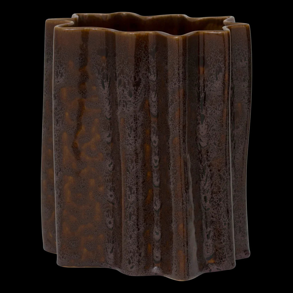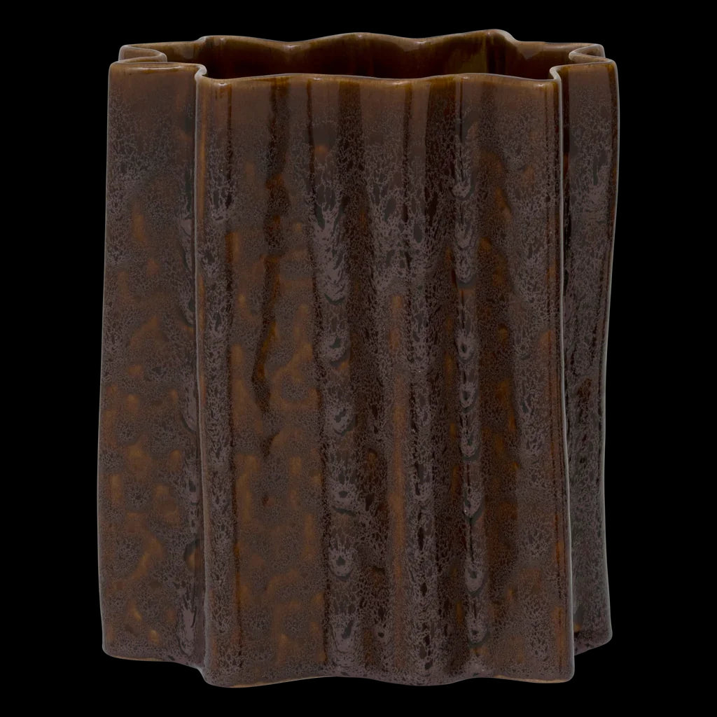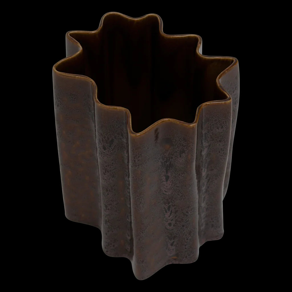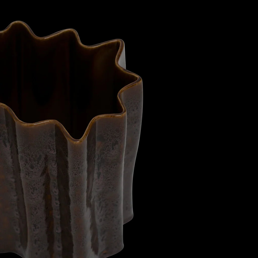 Krukke Sculpted er et kunstnerisk mesterværk i keramik, skabt med en organisk og ujævn form, der giver et levende og skulpturelt udtryk. Den reaktive glasur i jordnære lilla- og bruntoner gør hver krukke helt unik – ingen to er ens.