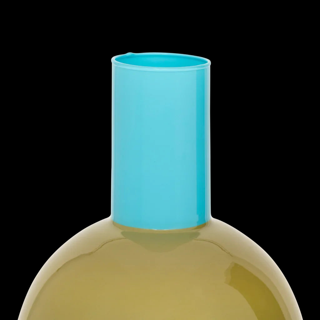 Vase Lahja er et moderne og kunstnerisk statement – en farverig kombination af blå, oliven og lilla i markante farveblokke. Den runde krop og den smalle hals skaber et legende, skulpturelt udtryk, der gør vasen lige så smuk uden blomster som med en enkelt, markant stilk.
