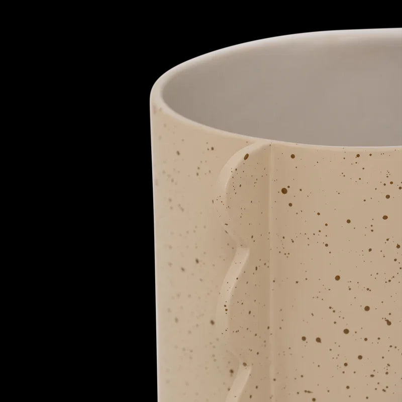 Krukke Mola er et kunstværk i sig selv – et dristigt og iøjnefaldende design, der forener skulpturel form og bæredygtigt håndværk. Den er fremstillet af 50 % genanvendt og 50 % ny keramik (GRS-certificeret) og har et karakteristisk udtryk med bølgende “vinger” og en mat taupe-overflade med brændt orange prikker.