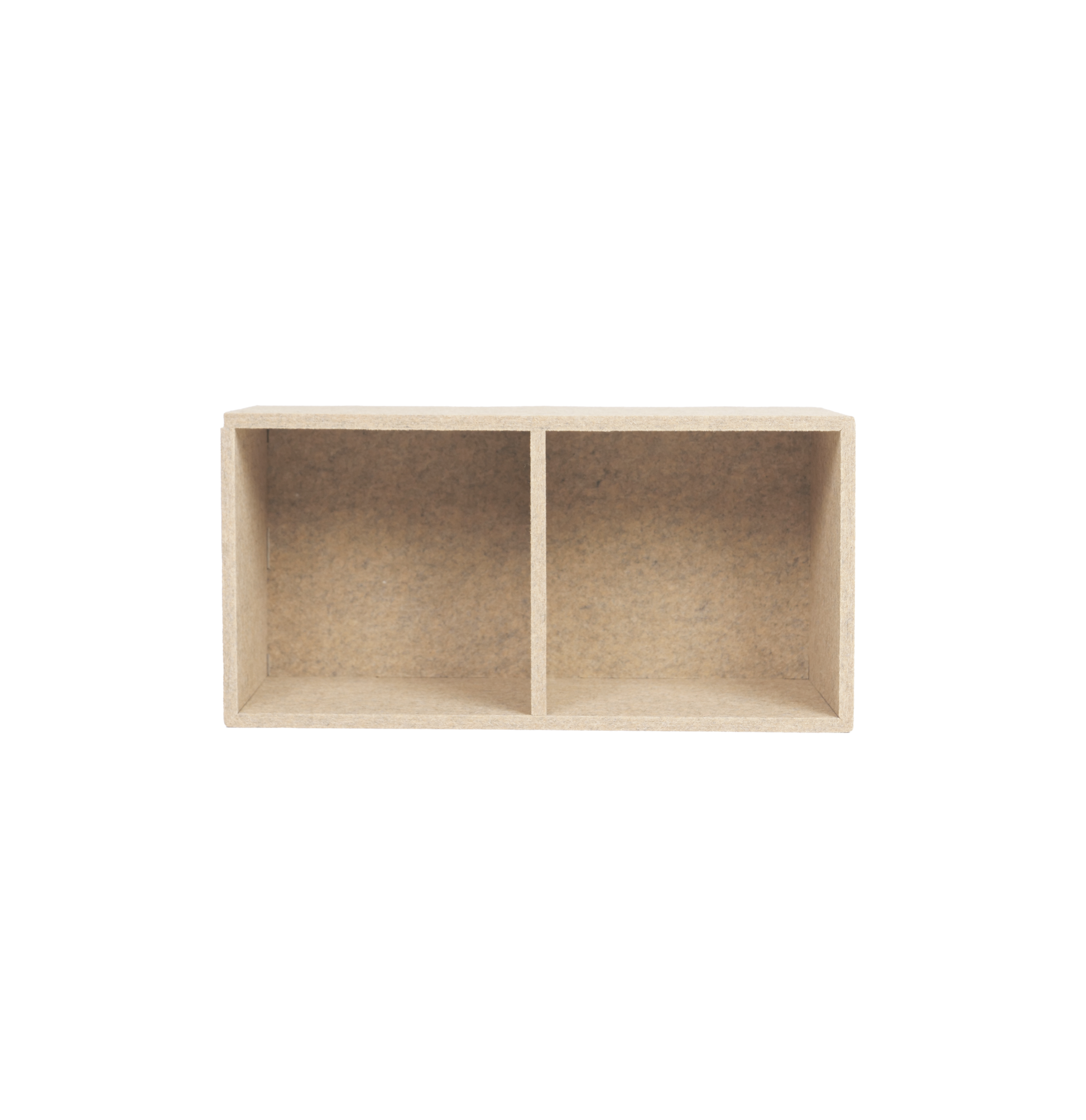 Vægreol Finn med 2 rum på 20x20 cm, kan fastgøres til væggen med de medfølgende skruer. Fremstillet af PETpanel-materiale (genanvendte plastflasker). Med det medfølgende ophængsmateriale kan Finn hænges både vandret og lodret. Beslaget skrues på langsiden for vandret placering.